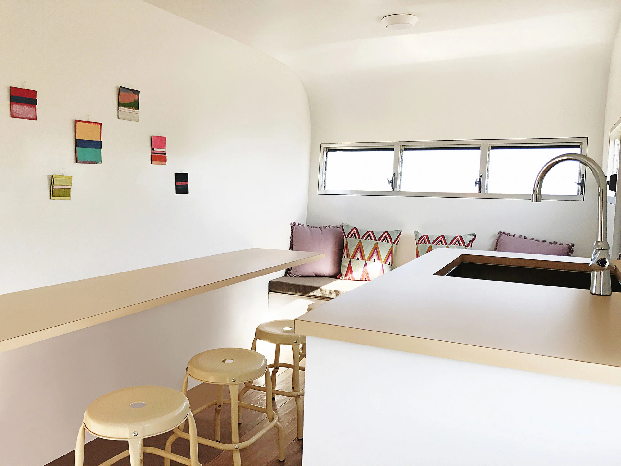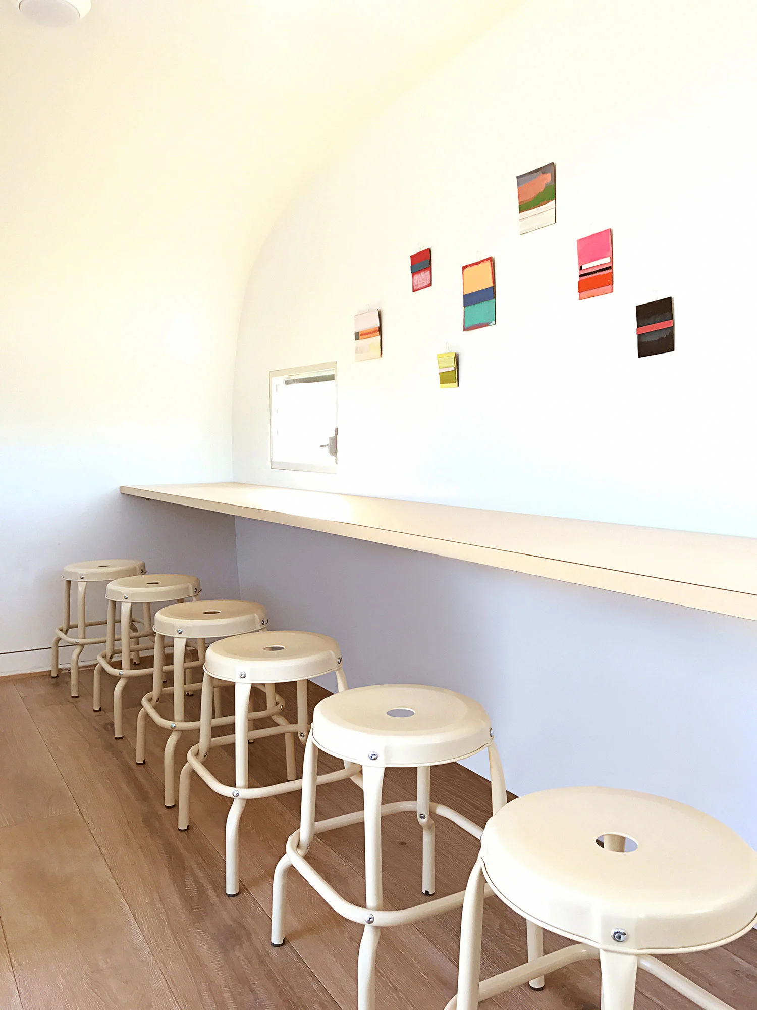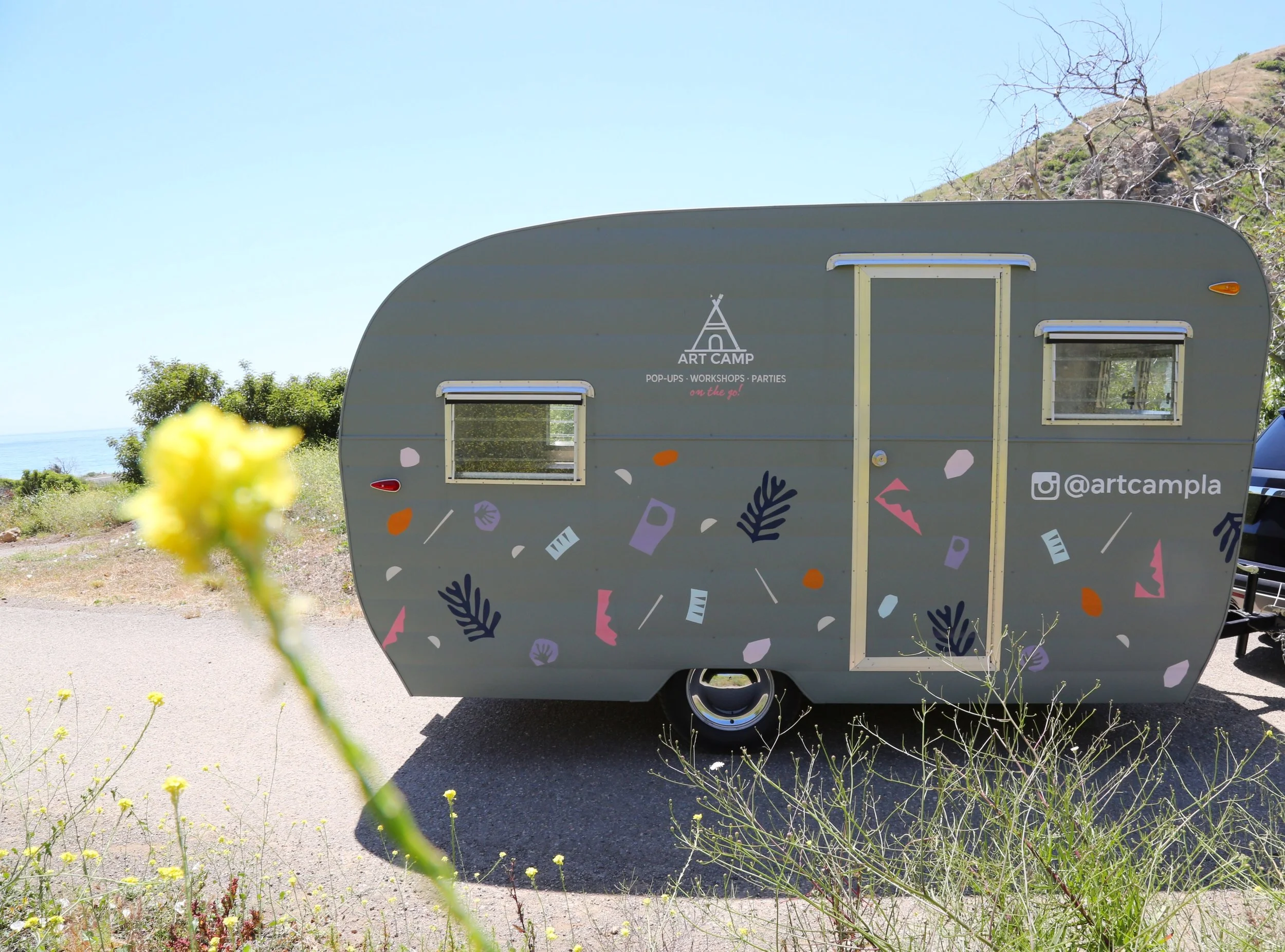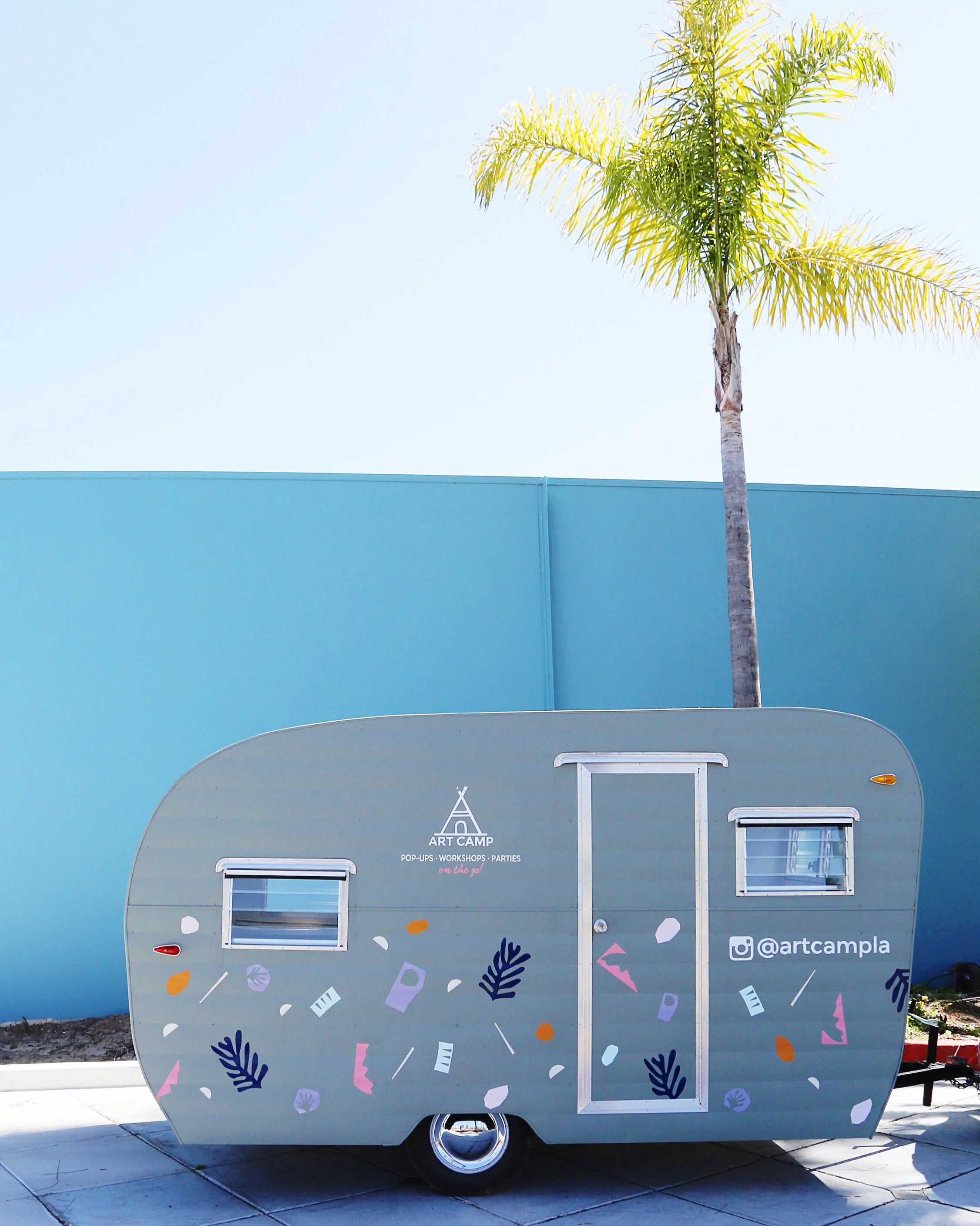 There I was, paused at a 4 way intersection when it hit me (not in the literal sense, it was just me and my thoughts at this red light): a mobile art studio built inside of a vintage camper! You guys, I have been a traveling visual art teacher for most of my 20+ years of teaching. I have jokingly referred to every car that I have ever owned as my "mobile art studio". I have been running camps, and parties, and workshops, teacher trainings and art shows out of the trunk of my car for eva' but it wasn't until that moment that it occurred to me... maybe I wasn't working toward a brick and mortar location. Maybe the natural evolution of this form of teaching that I had unintentionally fallen into wasn't to graduate to the next thing but to own my thing: The mobile studio.